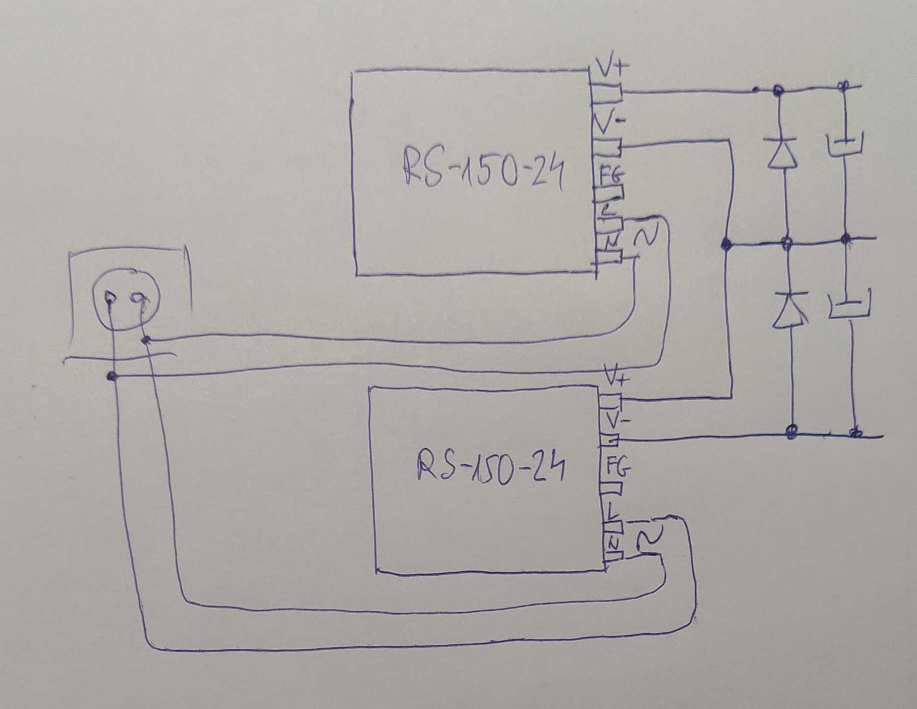 Pozdrav, imam pitanje u vezi switching napajanja pošto ih nisam do sada koristio, a spojio bih 2 serijski za napajanje pojačala, samo nisam siguran u vezi uzemljenja sklopa unutar kućista pojačala i to u dva slučaja, sa i bez pristunog voda uzemljenja iz mreže. U pitanju su 2 Meanwell RS-150 napajanja sa blok dijagramom kao na zakačenoj slici. Po dijagramu kontam da bi DC nulu trebalo ostaviti da pluta a da FG konektore treba povezati sa vodom uzemljenja mreže ukoliko postoji, - a šta ako taj vod ne postoji? Ako u tu jednačinu dodam i povezivanje kućišta, u oba slučaja, definitivno mi treba pomoć.