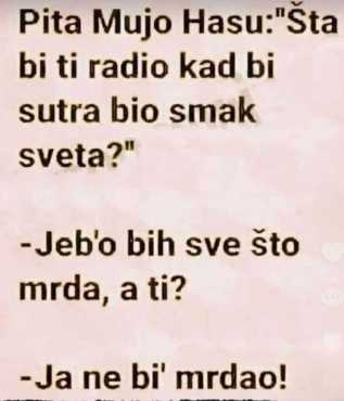 bez Žene , , javljam se , nhf , dina pes , slučajno , nick name , pojasnim ak treba , nis provokartor , pamtim nebitne stvari , a postajem senilec nhf . do sad smo si bili dobri· 4 komentara