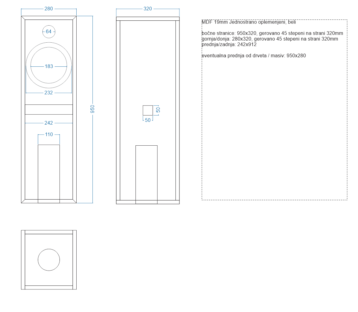 Pokojni VladaC bio je predložio skretnicu bez notch filtera, zobela etc. Ja sam samo to dodao na njegovo i malo manje atenuirao visokotonac, i stigao do ovoga: To je sve ideja od WLM La scala, nekada to bilo ne znam ni da li ima više ta firma, a kamoli zvučnici: 6moons audio reviews: WLM La Scala 6MOONS.COM Floorstander je 60 litri, a "bookshelf" mislim 25 litara. Kutijon sam ovako odradio: - Danas