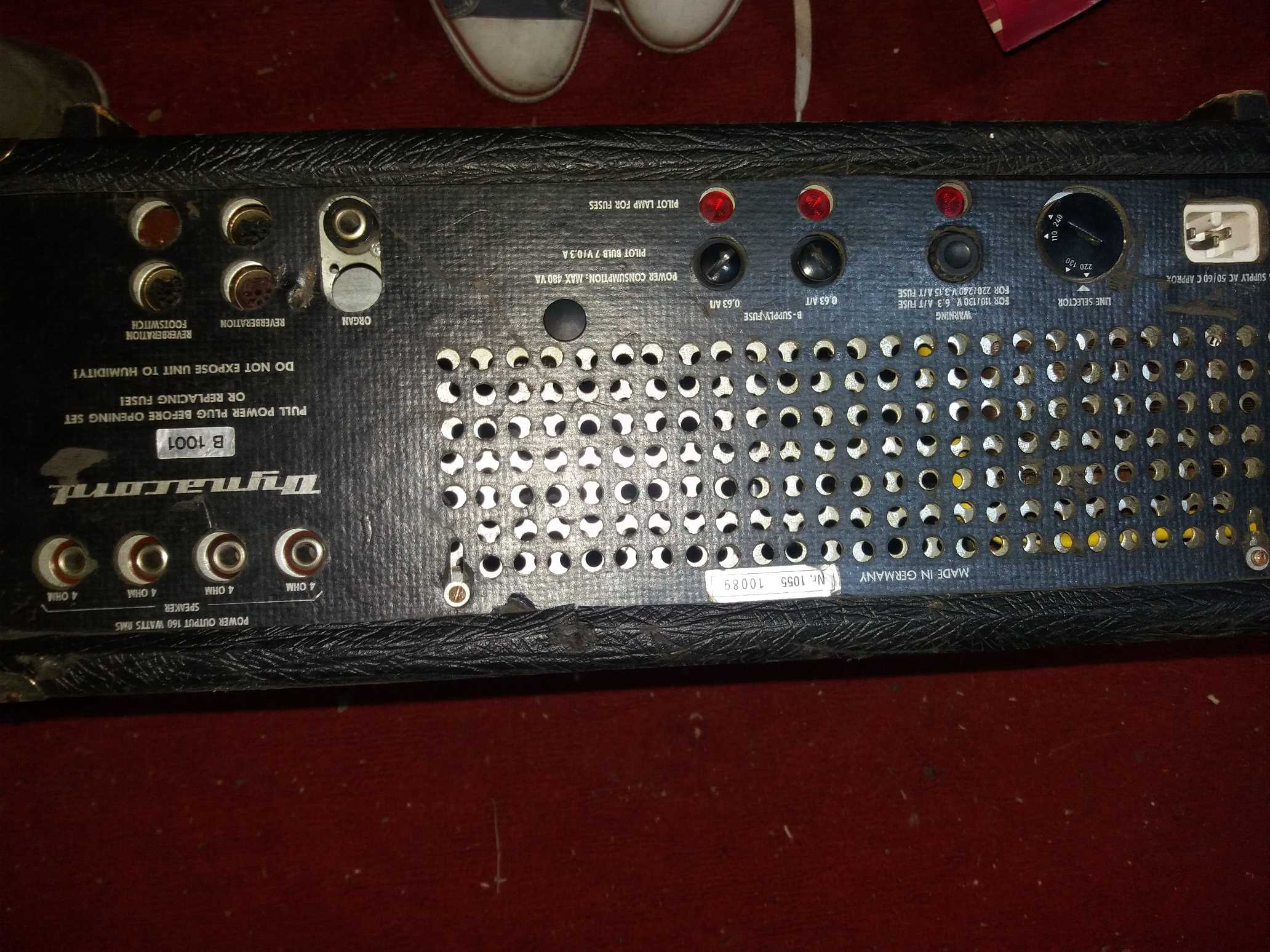 Da ne otvaram novu temu ali bice i to uskoro kada ovaj 200W Dynacord stigne na red za refresh , btw, ovo pojacalo jos uvek dosta dobro radi cak i sa tako starim i losim mreznim elektrolitima od kojih jedan ocigledno i curi , unutra su od lampi 4x EL34 Tfk koje trenutno rade sa B+ od 830Vdc , tu je i jedna ECC81 koja ih sve cetiri ganja , ostalo je napravljeno sa poluprovodnicima , ima odlican krupan izlazni trafo napravljen na duplom C jezgru , mrezni trafo je ogroman i sigurno je preko 30 kvadrata preseka jezgra , onako na prvi pogled ali i gledajuci servisni manual par ovakvih mocnih 200W pojacala uz neke sitne prepravke mogla bi bez da se ``oznoje`` da poteraju i neke najzahtevnije kucne HI-FI zvucnike , tipa magnetostati ,elektrostati ,...