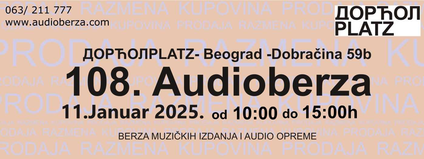 108. Audioberza u Beogradu održaće se 11. Januara 2025. od 10 do 15h u ДОРЋОЛ PLATZ -u - Dobračina 59b - Beograd DOBRODOŠLI ! ! !