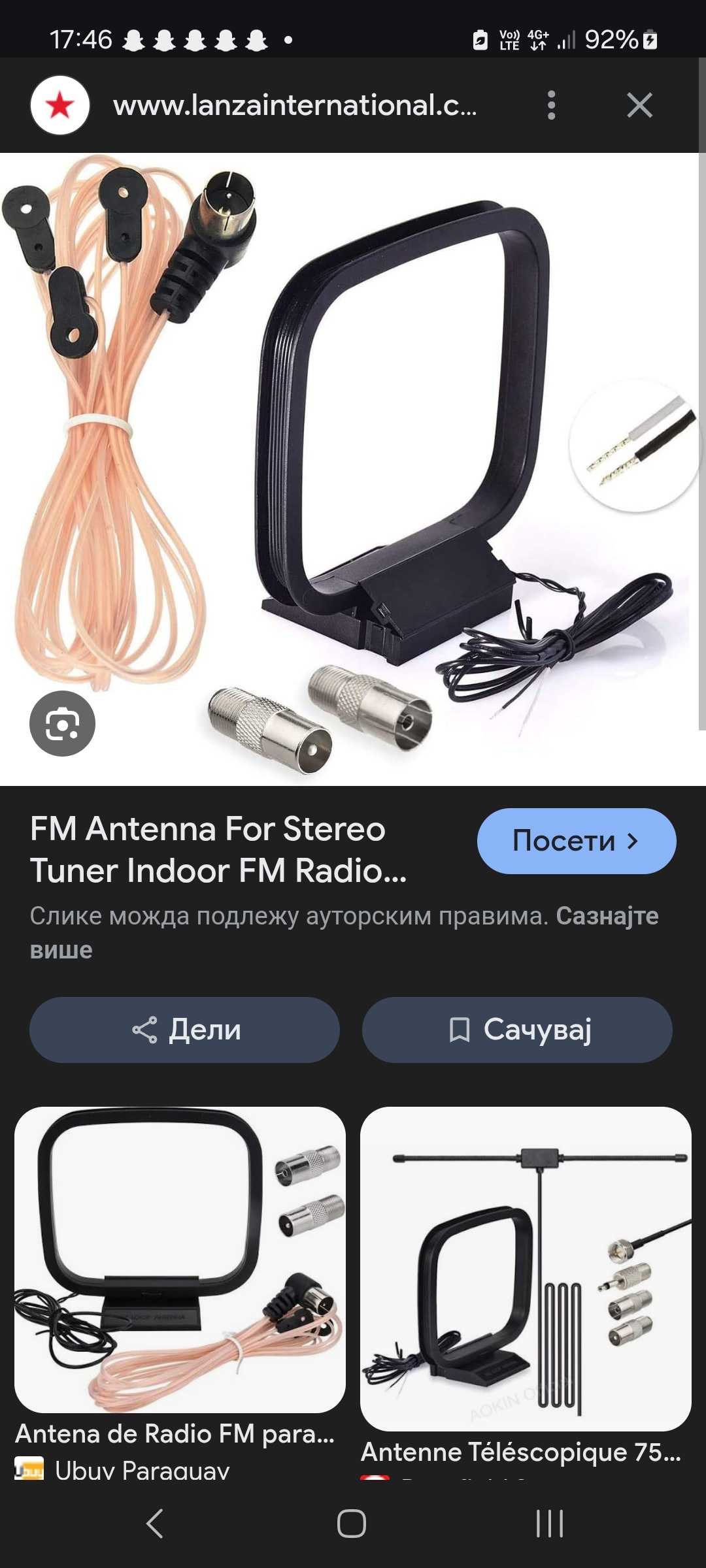 Pokusaj da nadjes: ovakvu antenu koja se dobijala uz neke istocnjacke portabl TV, koja ima koaksijalni prikljucak koji u sebi ima transformator impedanse (asimetricni clan). Nekad je bilo toga dosta, sad je verovatno malo teze pronaci, na nekom tavanu ili na nekom buvljaku. Vidim da po ducanima ima nesto ovako: M&G Electronic | ANTENA FM - UKT TIP 105 WWW.MGELECTRONIC.RS Nisam probao, ali bi tebalo da je za mrvicu bolja od tvoje improvizacije. Najbolja opcija je krovna usmerena antena prema BN. Radijska antena FM-50 F - Radijske antene - Iskra WWW.ISKRA.SI Radijska antena FM-50 F se uporablja za sprejem analognih radijskih signalov v horizontalni ali vertikalni polarizaciji.