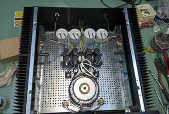 pretpostavka da si proverio PSU idealno je da radis kanal po kanal,ali ako si dovoljno siguran u sebe/svoju izvedbu , mozes raditi sa oba prikljucena na PSU procedura: oba ulaza grounded , bes opterecenja na izlazu jedan DVM stavis na izlaz , za monitoring DC offseta upalis proveris da preko R10 imas oko 470mV , znaci 10mA kros LTP CCS. setuj to sa TP2 drugi DVM preko R29 iterativno - putem TP3 regulises struju Aleph CCS-a (gornji mosfet) a putem TP1 podesavas struju donjeg mosfeta cilj je da imas pad napona na R29 od nekih 0.6 do 0.66V za Iq od ~2A i da imas sto blize 0mV na izlazu pri svakom koraku napravi promenu od 50% do zeljene , vrati poklopac kutije , sacekaj temp. equilibrium , proveri vrednosti onda skines poklopac , izvrsis promenu od 50% do zeljene vrednosti , vrati poklopac , sacekaj , proveri vrednosti finalni cilj je oko 2A Iq i sto blize 0mV na izlazu , u uslovima temp. equilibriuma sa poklopcem na mestu - dakle kako ce amo i biti u eksploataciji prosto k'o pasulj , zar ne ? sve napisano vazi za oba kanala , redosled setovanja kanala po volji