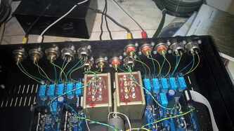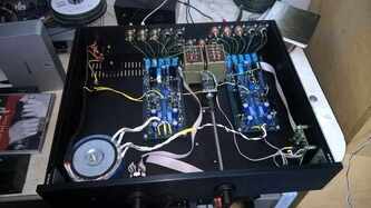 pre neki dan kod mene bio konzilijum malo se palamulilo, malo slusao jaz ... drugar mi skrenuo paznju na par ruskih sema koje su me odmah zaintrigirale. em jedna cev manje, em se koristi moja voljena EF86 ulazna. posto vec imam PP, 2x 6V6 i 2x ECC88 long tail O.F. na dasci, rekoh da probam. pod obavezno. i napravio sam, to jest prepravio. sa long tail O.F. na self split. 2x 6V6 (ruska 6P6S) i 2x EF86 Philips Miniwatt. kad sam upalio pojacalo, na prvu loptu mi se dopao zvuk. ova konfiguracija ne da je bolja od klasicne, bolja je ihahaj. zvucno je fantazija. jeste da na papiru sema izgleda bezveze, ali zvuk to nikako nije. za probu je bez NFB, a za buduce cu eksperimentisati. nastavak sledi.6 poena