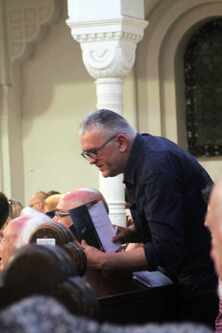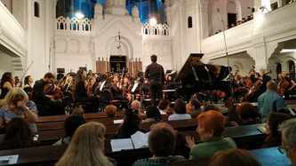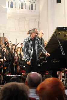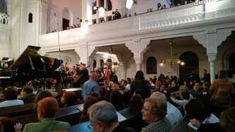 16.04.2019. Sinagoga, Novi Sad NOMUS.. Kemal Gekić.. utisci su sveži, eno ih fotografije i program gore, postavih negde i kratak video.. sinoć je Novi Sad bio Svet.. zaboravio sam kad se to poslednji put desilo, ali eto, desilo se sinoć, uprkos i unatoč svemu.. bilo je dirljivo gledati i slušati maestra Gekića kako se potpuno predaje mladom Orkestru, kako zajedno sa njima uz osmeh, lagano prolazi kroz repertoar.. ovo je bio jedan od onih koncerata tokom kog nije jasno ko je više uživao: izvođači ili publika.. doveo nam je Gekić u goste Fredricka Kaufmana, kompozitora klavirskog koncerta Guernica, pisanog u ovom veku, baš za njega i za Češki Nacionalni Simfonijski Orkestar.. vremešni kompozitor je sedeo u redu ispred mene, i vidno uživao slušajući program.. Brahmsa smo preskočili, nekako se izmigoljio potisnut utiscima koje je proizvela Guernica, srećom pa se brzo oporavismo do početka Betovenove Fantazije za Hor i Orkestar, koja je bila finale koje se samo može poželeti - oko 150 izvođača, hor na galeriji, ponovljen drugi stav na bis.. u skučenoj Sinagogi, čija akustika i pozornica moe da iznese dvadesetak izvođača, sabralo se 7, 8 puta više, prštalo je sve, bilo jasno, glasno i nekako intimno, zbog svih osmeha una sceni i ispred nje.. na izlasku klinac sreće drugare: e, Gari ša je bilo na koncertu? brte Betoven, Fantazija jbte2 poena -
