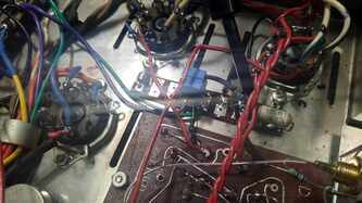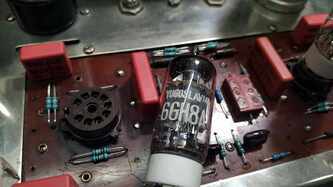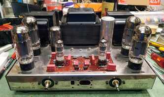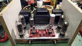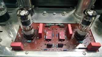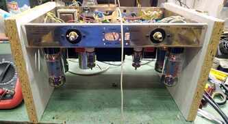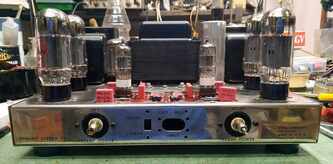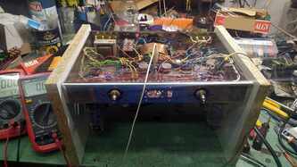 Dynaco ST70 , @Srecko mu ga gazda ostalo jos par sitnica da doradim mora parce oklopljenog kablica da ide od svakog RCA do pcb i moram da ubacim NTC u mrezu (soft start) , novi trafo je masala i bas blekne pri ukljucenju - sto nije ni cudo - ihaj grejaca u paralelu, a ladni zanimljivo je uociti detalje ....... tacno se vidi gde su kratili kornere ...... znamo da je originalan trafo uskopljen i da se zato greje ludacki ..... zato je PIK Audio trafo kako Bog zapoveda; pcb je takav kakav je, ulazne tacke kanala su kilometar i po od mase no , vremesni starac je dobio sve novo sto treba , spreman za sledecih 25 godina rada with no trouble mda, stari kond iskoriscen - ispraznjen i ubacene dve sekcije novih nije sve stalo , pa je zato dodatna pcb za ostatak - jos dve sekcije kondova svaka izlazna cev je dobila svoj trimpot za fixni bias, takodje i svoj 1R otpor u katodi za monitoring pri podesavanju Iq ene, sviri bocni srafovi - ko zna sta je bilo - dosao je sa nekim namestajnim srafovima ........ sad je u sasiju urezan M4, prolazne rupe donjeg i goornjeg poklopca prosirene na Fi5, i strpah najlepse neke koje sam nasao ( jal ovo jal Imbuse) ...... nije istorijski korektno al je crno - profesionalno5 poena