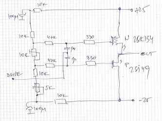 tumos je prekomplikovana djunta, bez razloga je pravio regove za napajanje biasing mehanizma, da ne pominjem i prevelike vrednosti otpora od gates do bias mosfeti u pitanju imaju nulti TempCo na 100mA Iq, nema potrebe za bilo kojom kompenzacijom, i sve sto treba je da se generator bias napona dobro filtrira - dakle vece impedanse prema railovima, rasprezanje prema masi ......... sto ce reci par otpora i par trimpots i par elkova i Bog te vido clipping ce da bude par volti ispod vrednosti rails prekostrujna zastita i ubacivanje source otpora su tek posebna prica; staviti source otpore na te mosfete je svetogrdje, gubi se i od ionako male xconductanse1 poen
