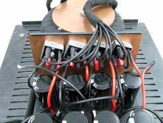 dual mono napajanje ( zajednicki primar trafoa za oba kanala , posebni sekundari i cap bank za svaki kanal )