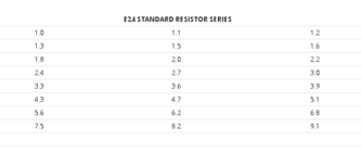 8. a moze i nesto ovako, mada bi vise voleo malo veci broj releja u paralelu nego releje u seriju ignorisati vrednosti otpora na prilozenoj slici prilozena i tabela E24 standardnih vrednosti (R,10*R,100*R,K,10*K,100*K,M)