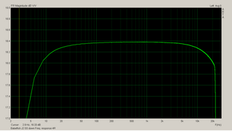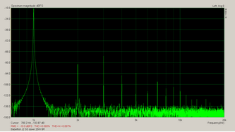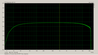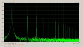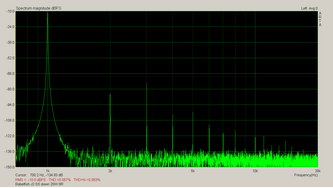 power-on and power-off behavior is same polite and nice and gorgeous as ZM Might itself , so there is no any surprise now some measurements ....... being lazy and impatient , I didn't use recently acquired Quantasylum ( older , SE one ) but my old funny interface box and EMU1212 in PC , software is ARTA Iq set at 1A8 , rails more or less exactly 25Vdc first set of measurements at 8R load ; each graph is titled at bottom ; as always with my T-Bed and test setup - ignore everything left of 1K ...... plastic box for interface , old and crummy PSU incorporated in T-Bed blahblah